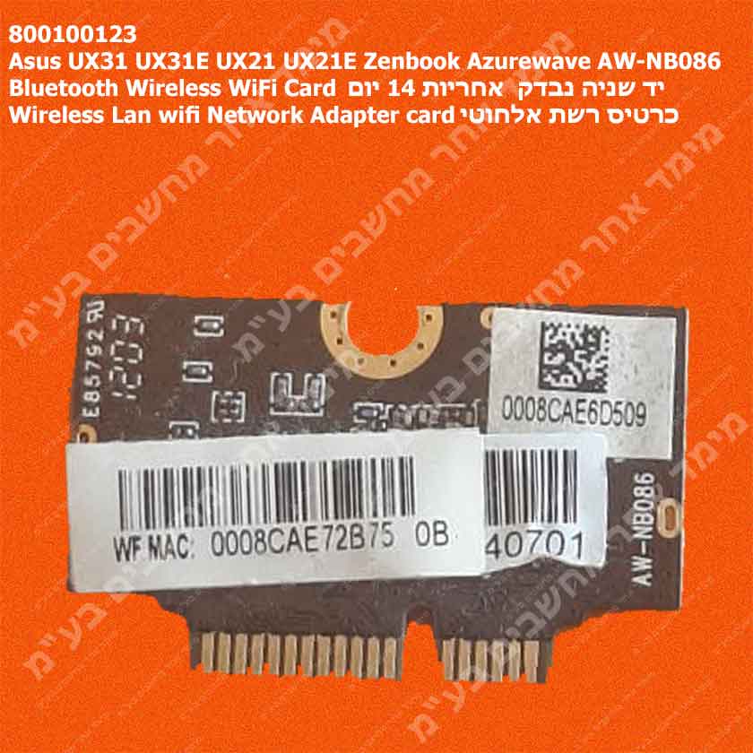 Asus UX31 UX31E UX21 UX21E Zenbook Azurewave AW-NB086 Bluetooth Wireless WiFi Card יד שניה נבדק אחריות 14 יום Wireless Lan wifi Network Adapter card כרטיס רשת אלחוטי